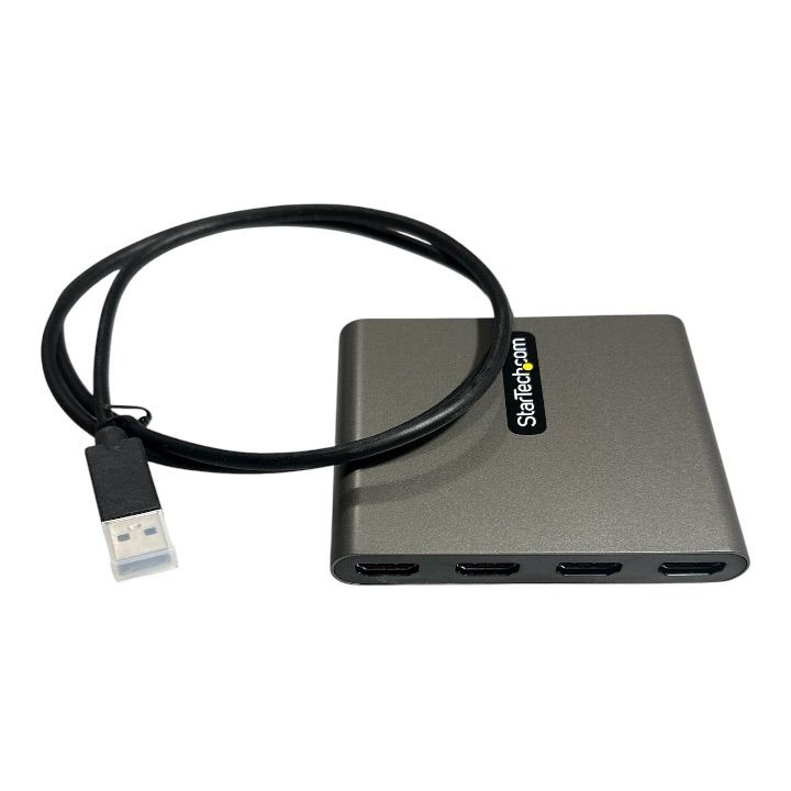 StarTech製 USB 3.0 to HDMI 4ポートアダプタ。1つのUSB 3.0ポートから最大4台のHDMIディスプレイに同時出力できるマルチディスプレイ用アダプタです。高解像度1080pに対応し、ビジネスやマルチタスク環境に最適。