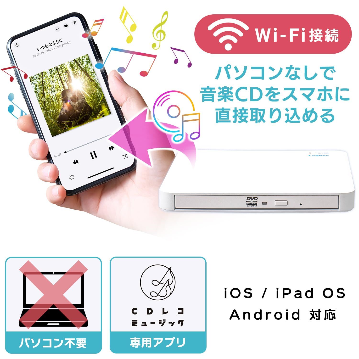 ロジテック スマホでCD スマホ 取り込み Wi-Fiモデル パソコン不要 ラクラク転送 ワイヤレス Wi-Fi接続 レコーダー プレーヤー iphone Android タブレット メーカー LDR-
