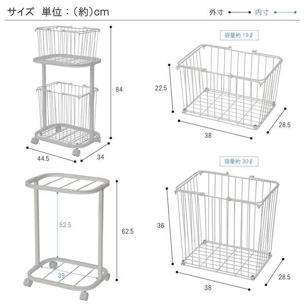 ランドリーラック 約幅28 5 cm 2段 ホワイト キャスター付き スチール ランドリーバスケットラック ランドリー収納 組立品 脱衣所
