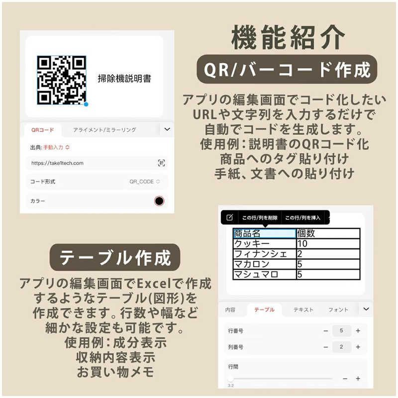 スマホアプリをダウンロードし、オリジナルラベルを編集して間単に印刷することができます。
