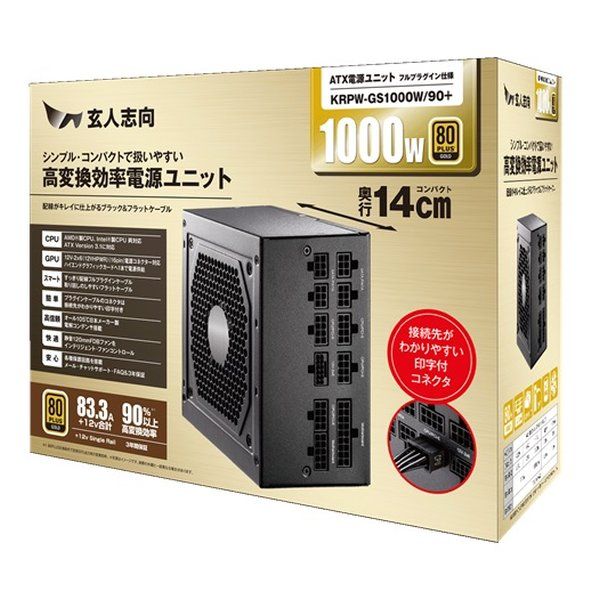 玄人志向 クロウトシコウ 高変換効率電源ユニット 1000 W KRPW-GS 90 2654646
