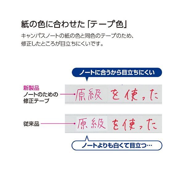 ●キャンパスノートの紙色と同色のテープのため、修正したところが目立ちにくいです。
