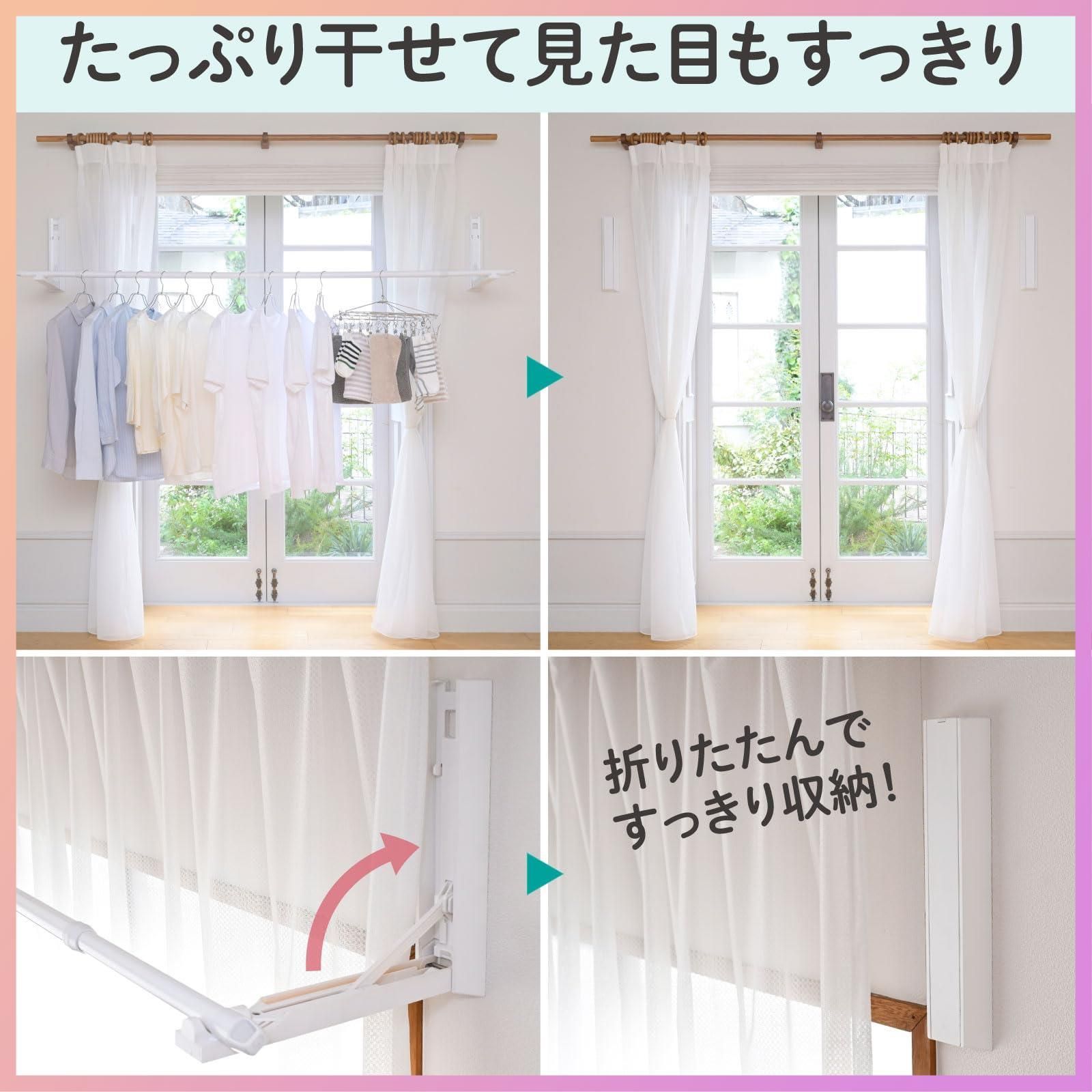 山善 室内物干し 物干し竿 室内 省スペース 洗濯物干し 伸縮 壁付け コーナーでも使える 取付け穴が目立たない 耐荷重10 kg 部屋干し 竿内寸最大2 m 窓枠 梅雨 組立品 ホワイト NPH 8025 WH